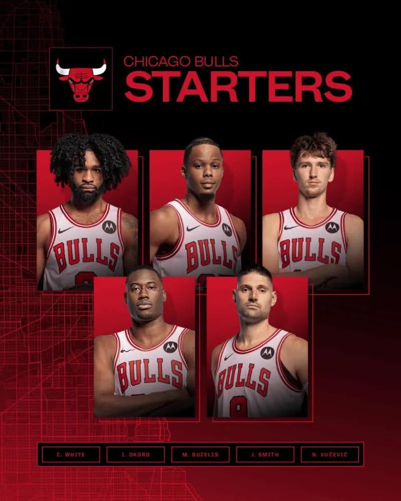 公牛首发:科比-怀特、奥科罗、布泽利斯、史密斯、武切维奇 xiaoqiao 2026年01月28日 15:00 42 0 虎扑01月27日讯 今日NBA常规赛,公牛将对阵湖人。公牛首发:科比-怀特、奥科罗、布泽利斯、史密斯、武切维奇来源:X虎扑01月27日讯 今日NBA常规赛,公牛将对阵湖人。公牛首发:科比-怀特、奥科罗、布泽利斯、史密斯、武切维奇来源:X