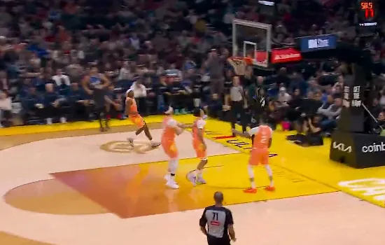 比赛的第一节,萨格斯反击接球单臂劈扣得手,魔术领先骑士到10分。