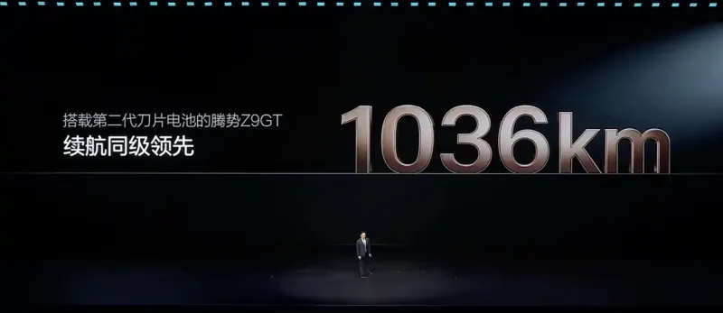 搭载第二代刀片电池的腾势Z9GT,续航里程可达1036km。