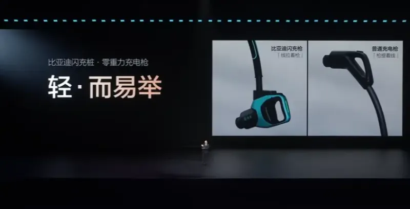 比亚迪闪充桩首创了滑轨悬吊式T型桩,解决了传统充电枪线束沉、线拖地等问题,让充电枪使用更轻松。