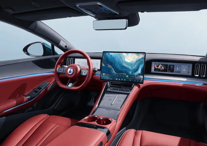 内饰方面,新车拥有浓郁的豪华氛围,对称式设计,中控台集成三块车机屏,后排还有两块12.8英寸屏幕,支持5屏联动。具备22扬声器丹拿铂金证据系列音响、Nappa真皮座椅、五门电吸、三层夹胶玻璃天窗、双层夹胶玻璃、二十四节气香氛、全车热石按摩、后排座椅一键放倒等功能。