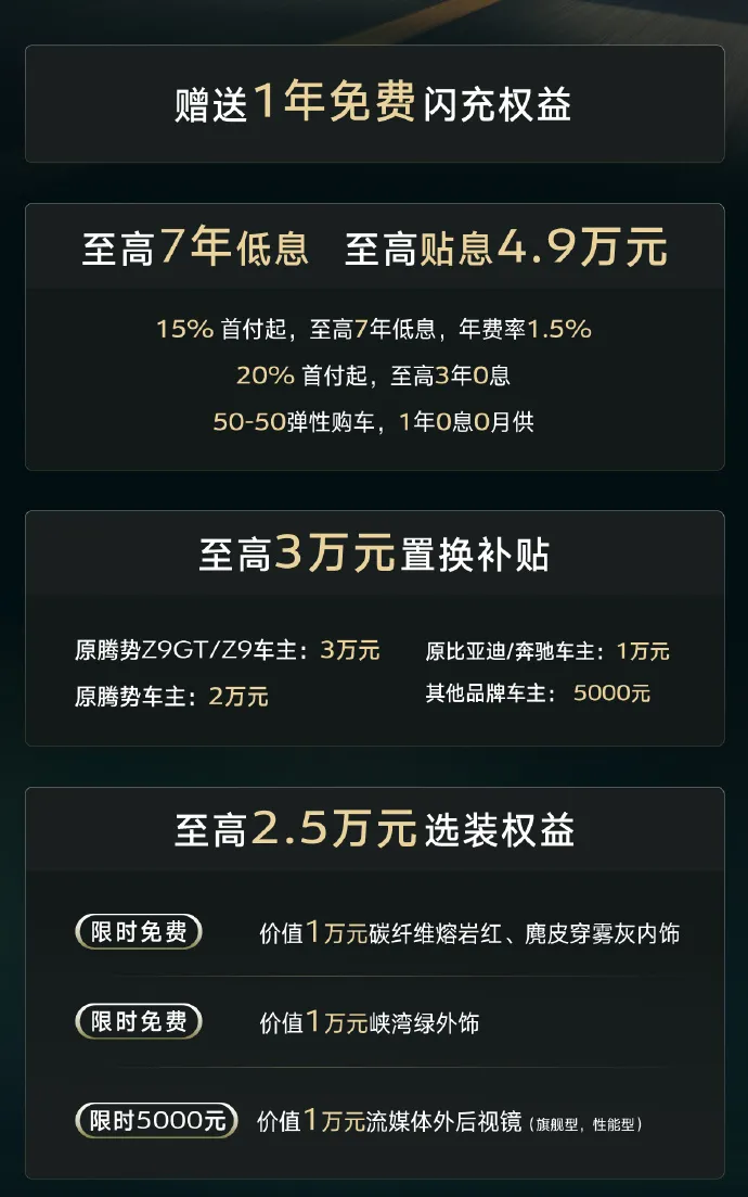 新款腾势Z9GT正式上市,新车共计推出5款车型,售价26.98-36.98万元。新款车型外观与内饰全面焕新,同时还将首次推出单电机后驱版,CLTC纯电续航里程最高可达1036km,是全球纯电续航里程最长的车型。