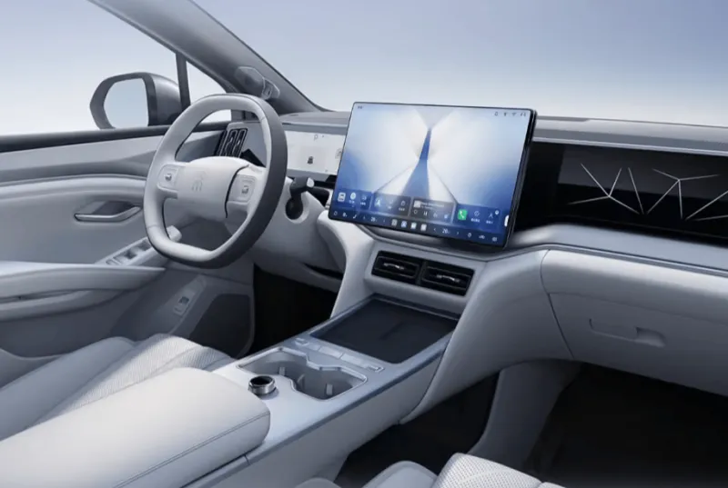内饰方面,此次新增暮海蓝内饰色,另外保留海韵灰内饰色。内饰依然是简洁的风格,整体有层次感,15.6英寸悬浮式中控屏升级为DiLink 6.0系统,增加外放“魔方传声筒”功能,新车还配备W-HUD抬头显示、50W无线快充、冷暖冰箱、12扬声器丹拿音响、环绕氛围灯、全景天幕、电动尾门。