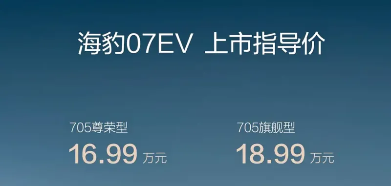 海豹07 EV正式上市,新车共计推出2款车型,售价16.99-18.99万元。新车定位为一款中型车,纯电续航里程705km。