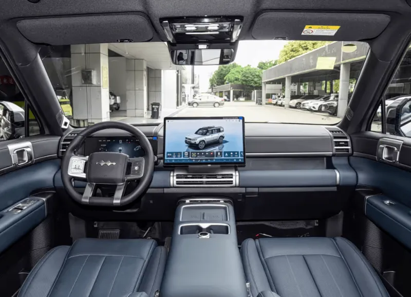 内饰方面,延续了豹5的一些设计理念,尤其是中控的排挡按键区域,车内配备8.8英寸全液晶仪表盘和15.6英寸中控屏,方向盘是家族化经典的四辐平底设计,新车配备压缩机冷暖箱,支持制冷-6-6°C、制热35-50°C。