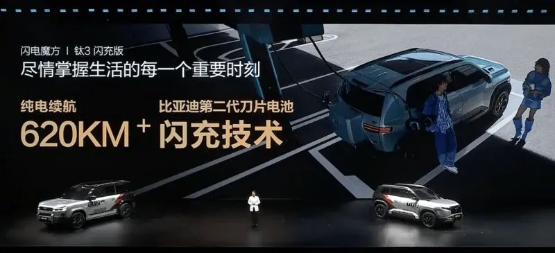 方程豹钛3闪充版正式上市,新车引入闪充技术,纯电续航620km。新车定位一款紧凑型SUV,此次重点引入闪充技术。