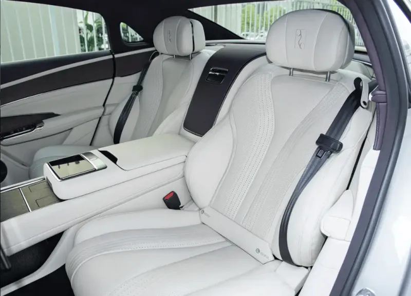 4座版后排还配备了独立座椅,并在中央扶手处设有娱乐控制屏,独享后排独立座椅一键开启舒享功能,可大幅后仰,搭配电动腿托与头枕、脚托,新车配备丹拿音响系统,拥有23扬声器。