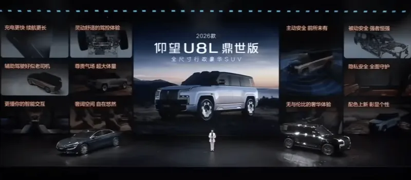 2026款仰望U8正式上市,售100.8万元起,2026款仰望U8在易四方性能迎来升级。